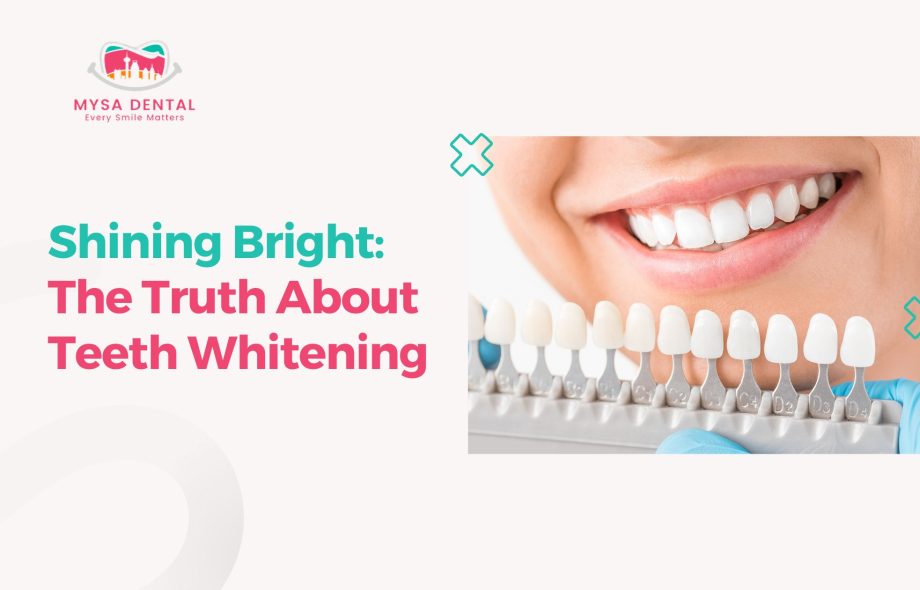 Teeth whitening is a secure way to improve your smile. It’s important to understand your options, potential risks, and how to maintain good oral health. Providing accurate information to your dentist at Mysa Dental can help them determine the best whitening approach for you. By making informed decisions, you can improve your smile and boost your self-esteem.